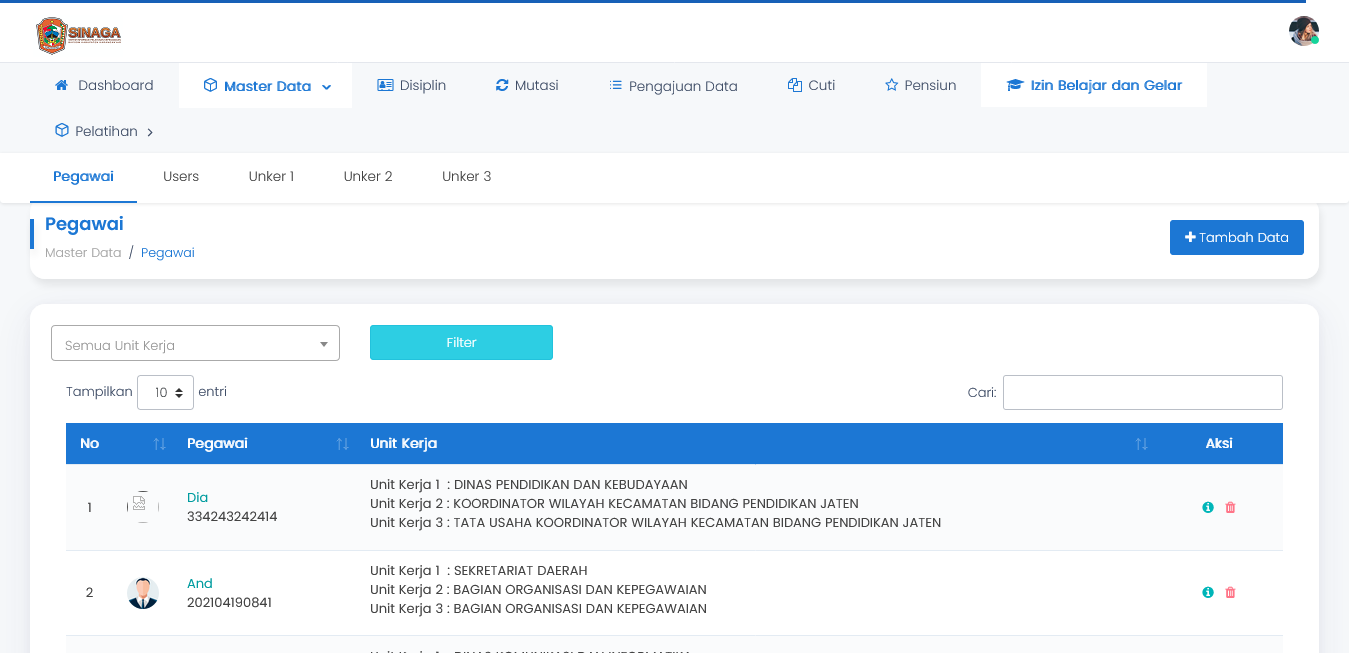 Data pegawai yang saling terintegrasi sehingga didapatkan data pegawai yang valid dan konsisten.